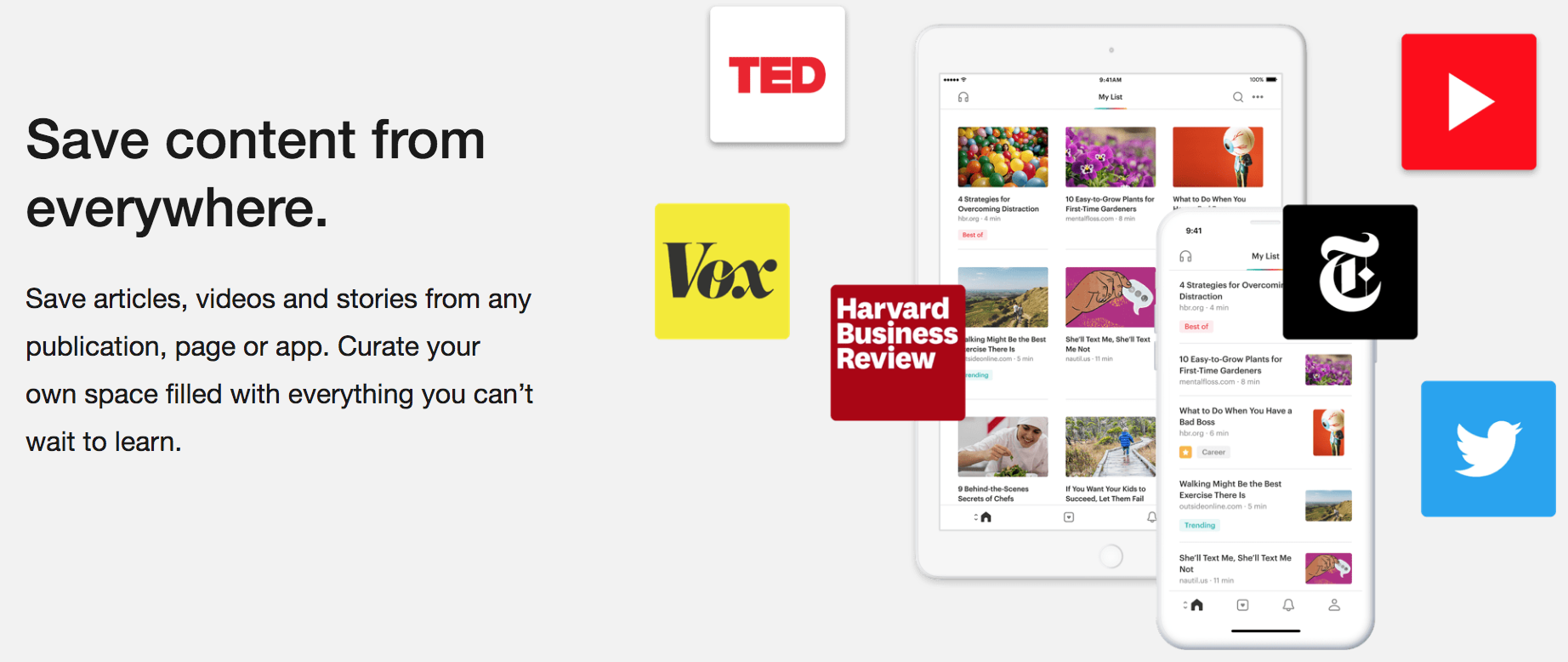 Similar to Evernote, Pocket syncs across all platforms, including your phone, tablet and computer so you can view it anytime on any device, even without an internet connection.