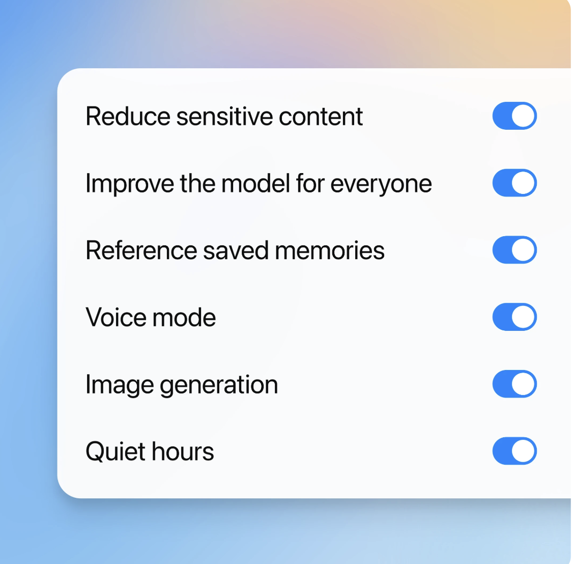 With linked accounts, parents can see how often their teen uses AI, what topics they’re exploring, and even set limits like screen time or filters. Teens still get their own space to learn and create, but with guardrails that keep things safe.